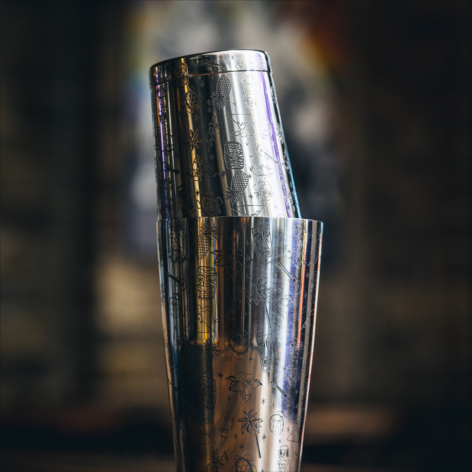 Förnya din bar med denna charmiga Tiki-mönstrade shaker från Urban Bar. Med sina 750 ml är denna tvådelade shaker perfekt för att blanda dina favoritcocktails med en tropisk twist. Varje del är dekorerad med vackra etsningar som skildrar ikoner från Stilla havets öar, vilket gör varje cocktailstund till en liten utflykt till paradiset.