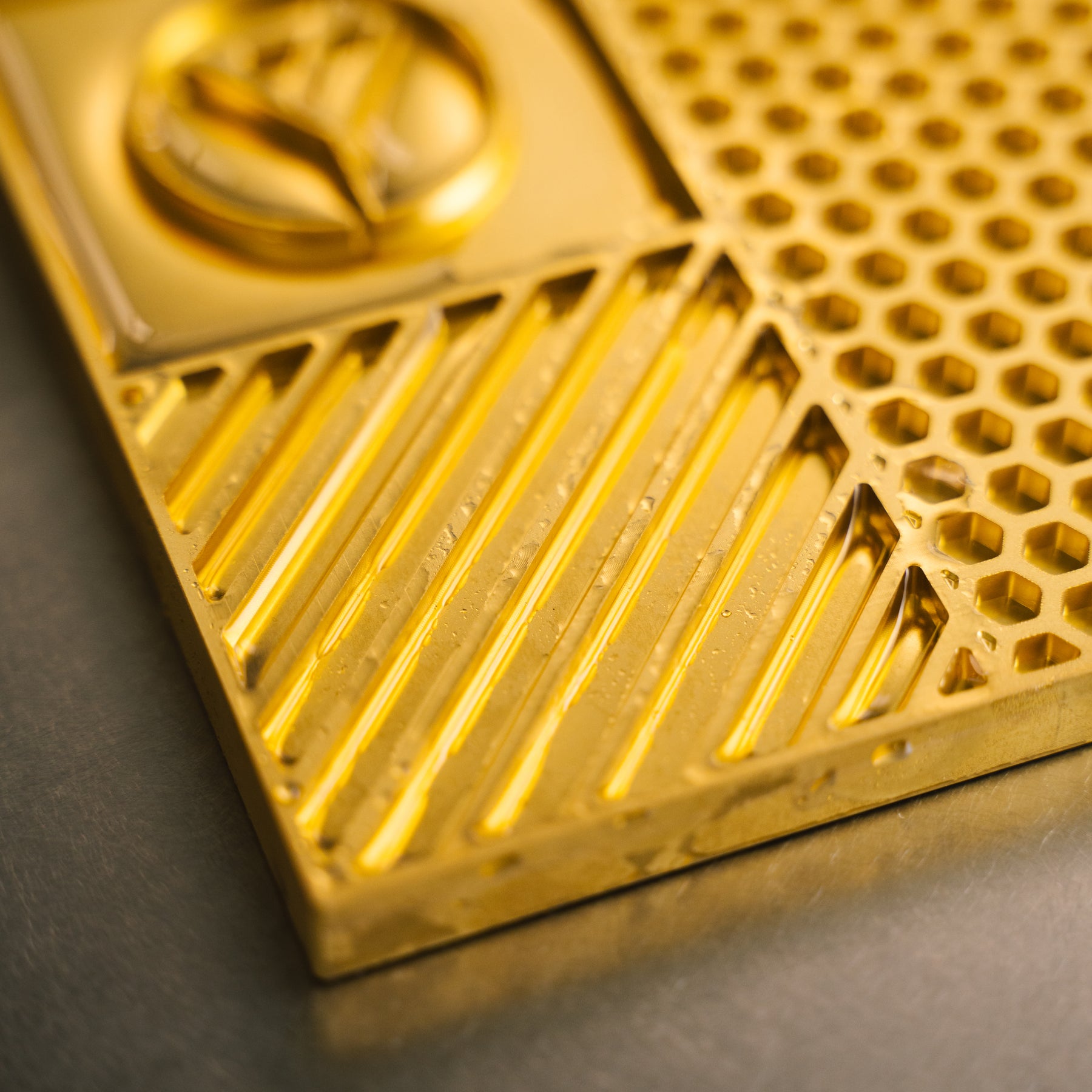 En isplatta gjord av mässing så att du på elegantast möjliga vis kan sätta ett mönster på dina isbitar